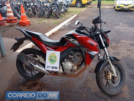 Uma motocicleta Honda CB 250F Twister, com indicativo de furto, foi recuperada pela Polícia Militar na tarde de quarta-feira (8) em Assis Chateaubriand. A ação ocorreu por volta das 16h20, durante patrulhamento de rotina da equipe da Patrulha Rural, no cruzamento da Avenida México com a Rua Minas Gerais, no Jardim Progresso.