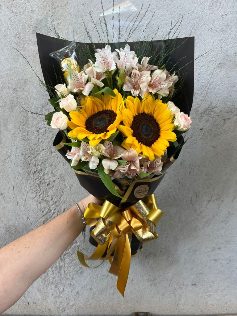 Há diversas opções disponíveis, como rosas, orquídeas, girassóis e outros arranjos, que podem ser montados de acordo com o gosto de cada cliente. Os buquês também podem ser personalizados, adaptando cores, flores e detalhes para criar um presente único.