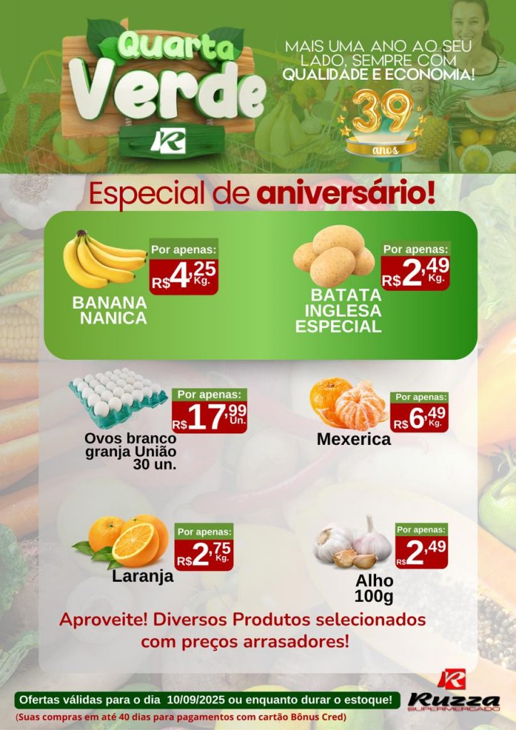 O Supermercado Ruzza de Palotina preparou ofertas especiais para esta quarta-feira (10), é dia de aproveitar a Quarta Verde!