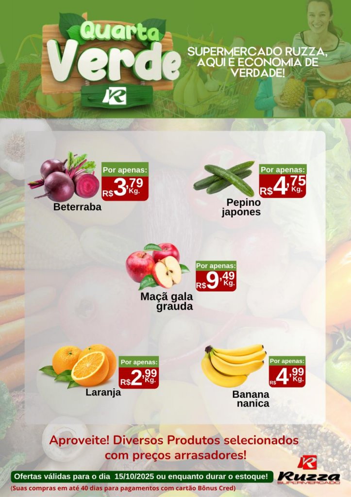 O Supermercado Ruzza de Palotina preparou ofertas especiais para esta quarta-feira (15), é dia de aproveitar a Quarta Verde!