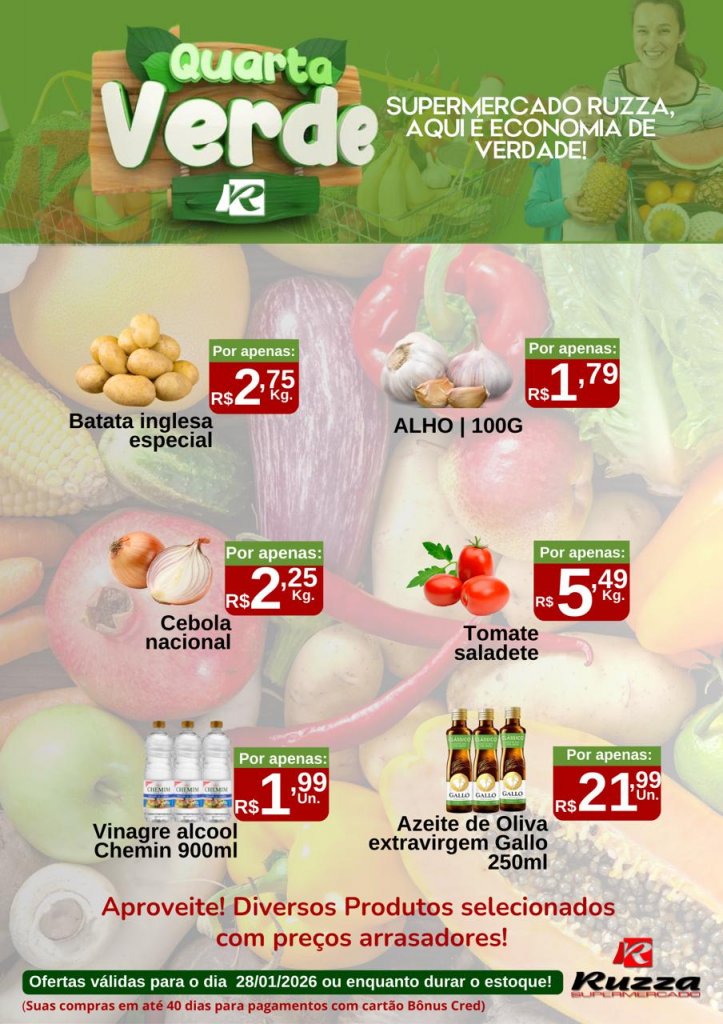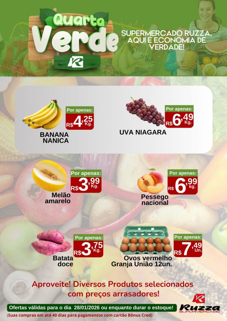 Nesta quarta-feira (28), o Supermercado Ruzza preparou uma nova edição da Quarta Verde — o dia perfeito para quem quer encher a cesta com produtos frescos e de qualidade.