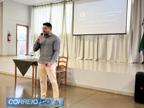 Representando a Polícia Civil, o Dr. Laécio abriu o ciclo de falas destacando o aumento dos crimes virtuais e apresentando orientações práticas para evitar cair em armadilhas digitais. Na sequência, o soldado Lopes reforçou o tema ao exemplificar os golpes mais comuns aplicados atualmente, mostrando como os criminosos atuam e como é possível identificar tentativas de fraude.