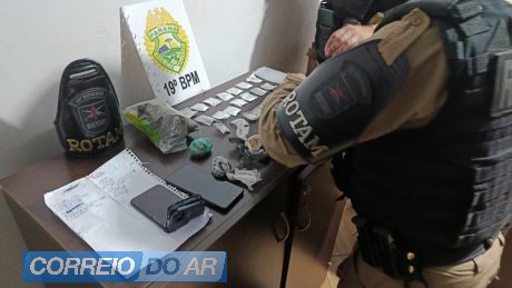 Na noite de quarta-feira (24), uma operação da ROTAM resultou na apreensão de diferentes tipos de drogas e na prisão de três pessoas em Toledo. A ação teve início durante patrulhamento pela Rua Alemanha, quando os policiais abordaram uma motocicleta que transitava na contramão, com um casal de 27 e 24 anos.