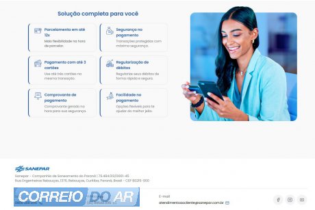 Para acessar a plataforma para pagamento com cartão de crédito, o cliente deve clicar no banner “Cartão de Crédito” no site oficial da Sanepar.