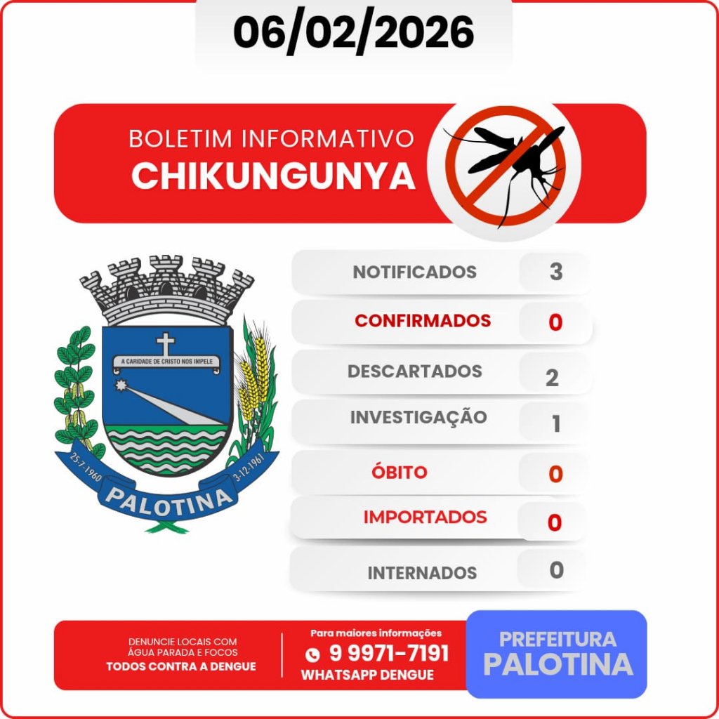 A Prefeitura de Palotina, por meio da Secretaria Municipal de Saúde, divulgou nesta sexta-feira (06) o boletim informativo atualizado sobre os casos de Dengue e Chikungunya no município.