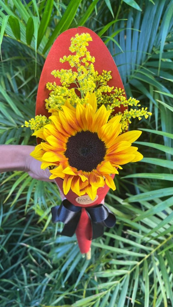 A floricultura oferece desde clássicos buquês de rosas vermelhas até combinações delicadas com astromélias e gypsophilas, além de girassóis vibrantes que transmitem alegria.