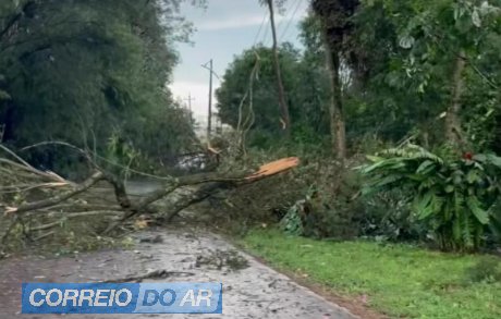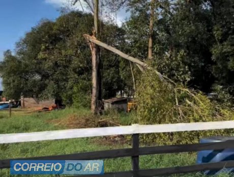 Na região da Vila Rural também houve queda de galhos e árvores, sendo algumas às margens da BR-163.