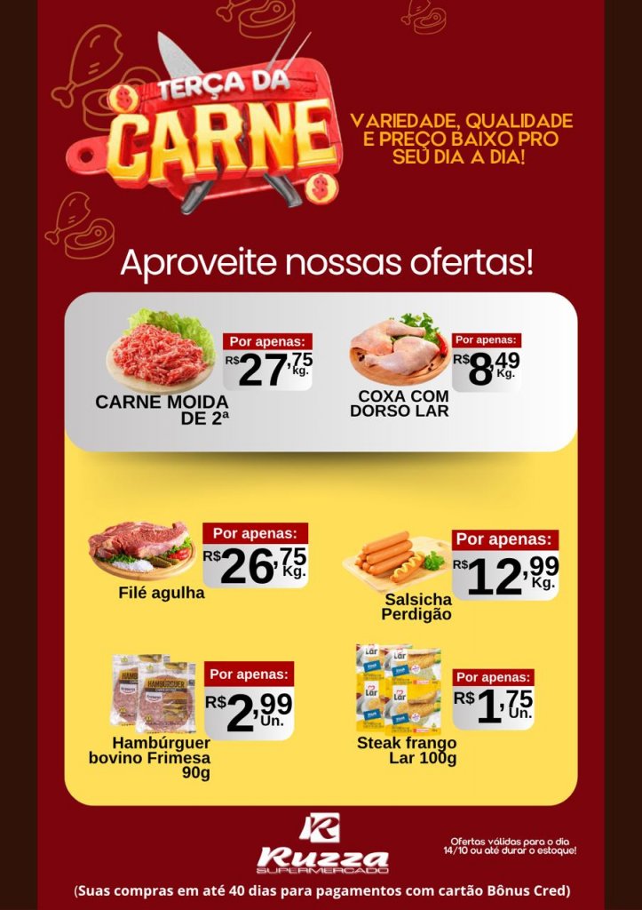 O Supermercado Ruzza preparou ofertas especiais para você nesta terça (14). Venha e aproveite a Terça da Carne!