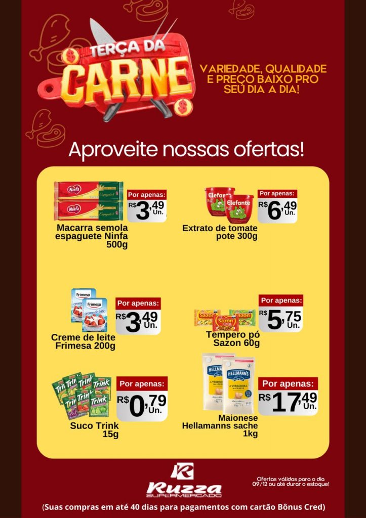 O Supermercado Ruzza preparou ofertas especiais para você nesta terça (09). Venha e aproveite a Terça da Carne!