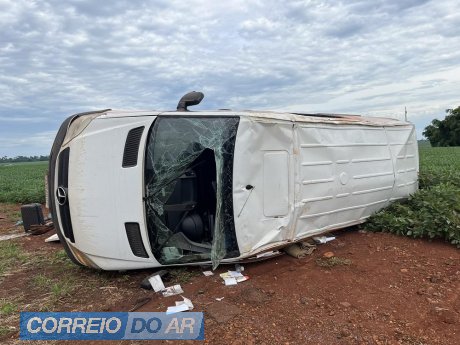 Van capota após derrapar sobre pedras espalhadas na PR-182, entre Maripá e Toledo