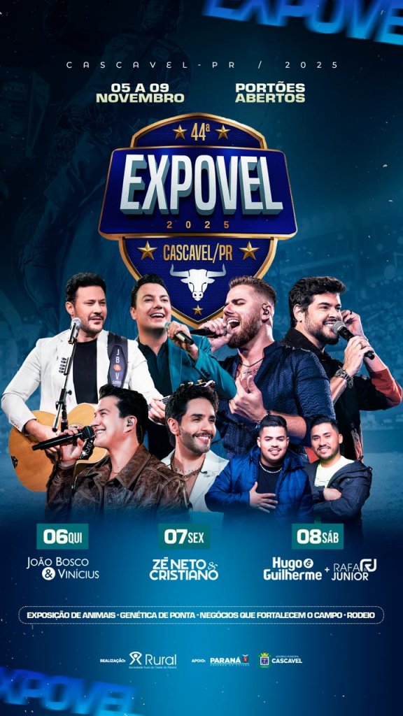 A Expovel de portões abertos está se aproximando. De 5 a 9 de novembro, Cascavel viverá um de seus momentos mais importantes em comemoração ao aniversário da cidade. E isso só será possível graças ao apoio fundamental do Governo do Paraná, por intermédio da Secretaria Estadual do Turismo e da Prefeitura de Cascavel.