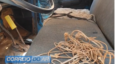 Ao abrirem a porta do caminhão, fabricado em 1.976, os policiais já perceberam a primeira infração: como cinto de segurança, o motorista usava uma corda. Além disso, foi constatado que havia carga nas partes externas do veículo; o caminhão estava sem a grade de contenção das toras; o motorista não era habilitado para conduzir caminhão (apenas carro); o chassis estava alongado, configurando alteração de característica; dois pneus, de seis, estavam "carecas" e o licenciamento estava atrasado desde 2021.